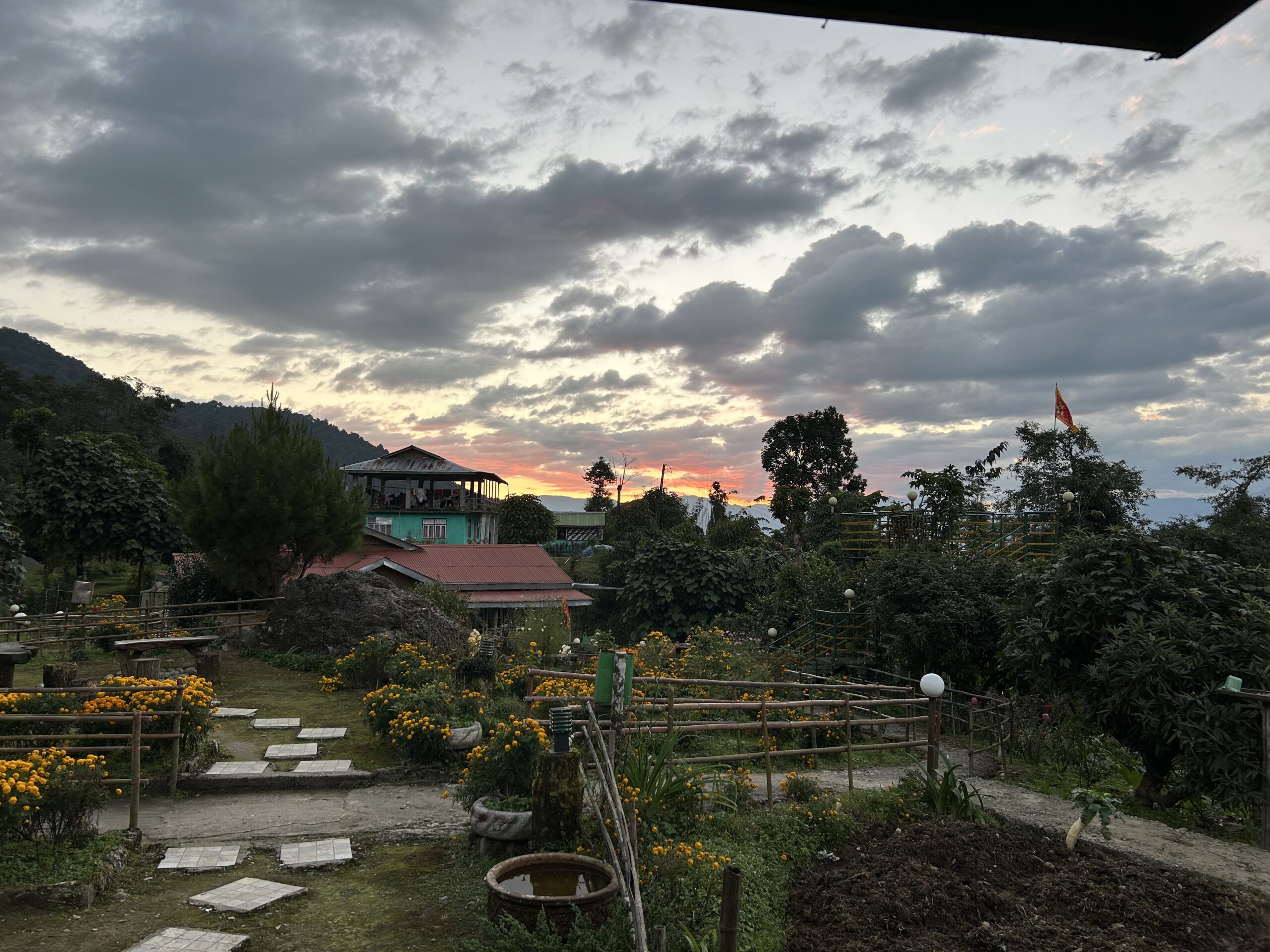 As the first rays of dawn creep through the room curtains, Hilltop extends a breathtaking view of the mountains looming majestically, their peaks dusted with snow, the dawn unfolds gradually, and a golden horizon pops into the view as the sun rises from the midst of dense wispy clouds, and the chirping of the birds, is one of the most soothing and peaceful sounds of surrounding nature one can enjoy.