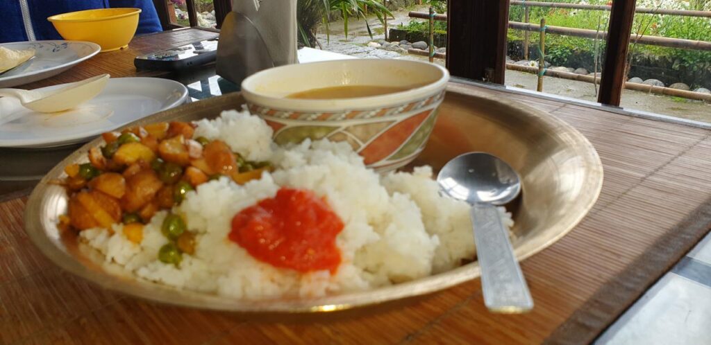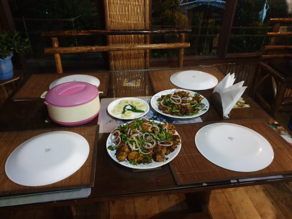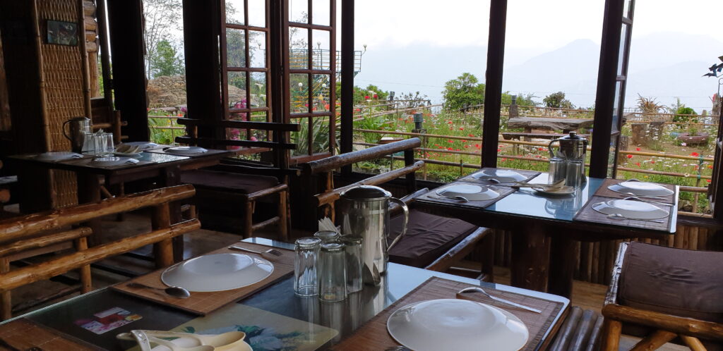 A Hilltop restaurant offers an idyllic dining experience with a breath-taking view of lush hilltop gardens and majestic snow-capped mountains. Its’ warm décor and inviting atmosphere that allows guests to savor meals while surrounded by nature’s grandeur.